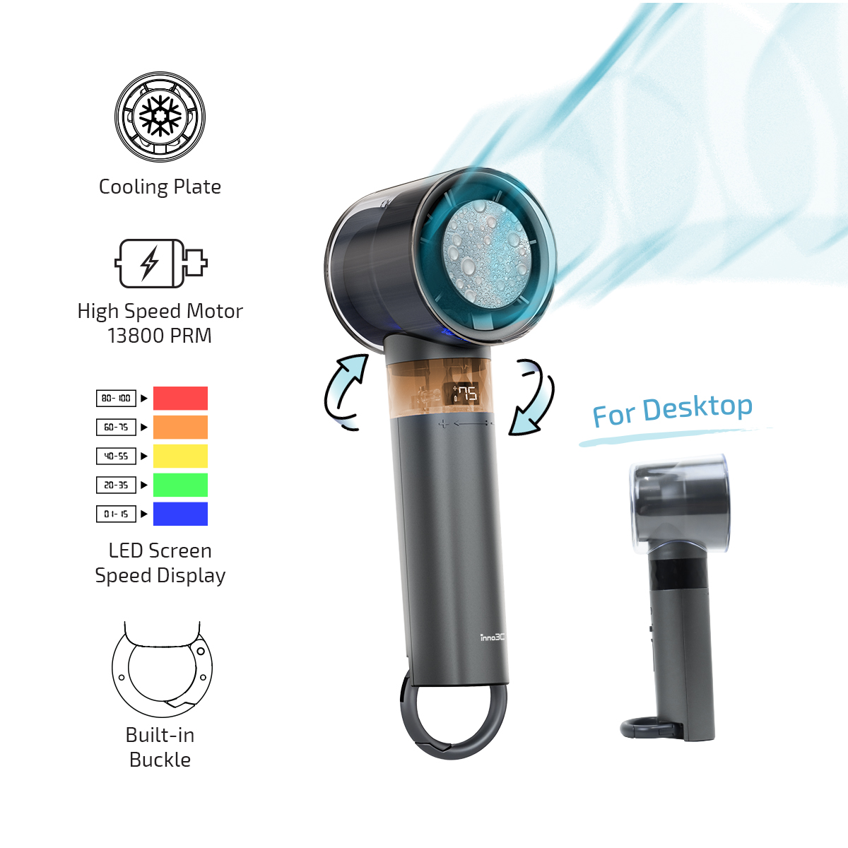 The hook doubles as a stand, so you can place it on desks or tables. Great for home, work, or outdoor fun—stay cool wherever you are.